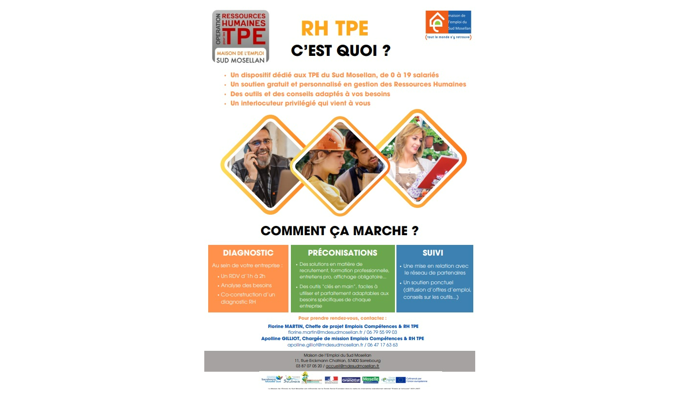 Un soutien gratuit et personnalisé en Ressources Humaines dédié aux Très Petites Entreprises du Sud Mosellan, tous secteurs d'activités confondus. Prenez rendez-vous ! Nous nous déplacerons au sein de votre entreprise pour un échange d'1h environ. A l'issue de l'entretien, vous recevrez par mail :